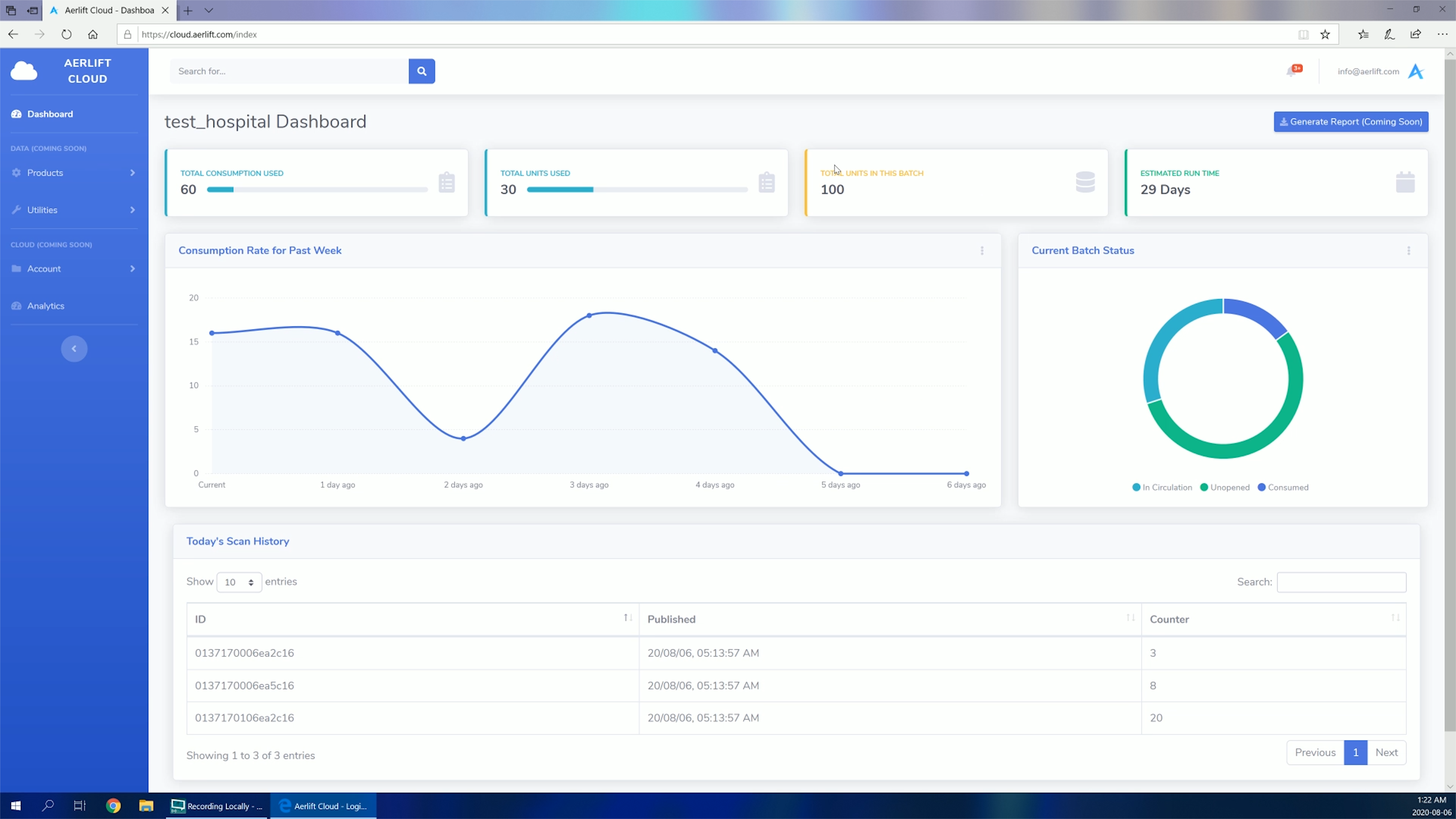 Embedded software for the device was written to decode RFID tags then uploaded the information over the network to a cloud database.