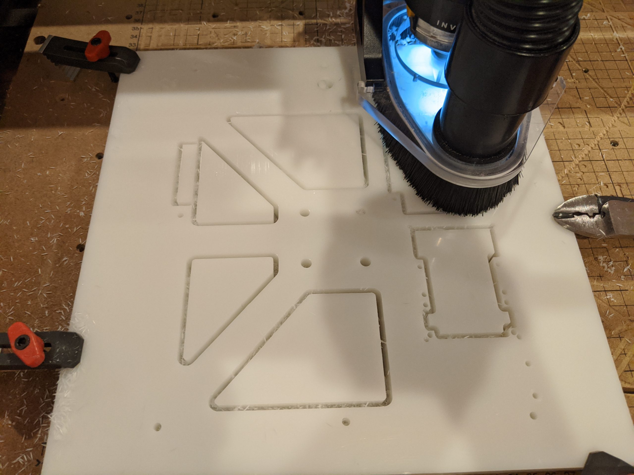 Next tool paths are generated from the 3D design using CAM software. The tool paths are then sent to a machine for cutting.